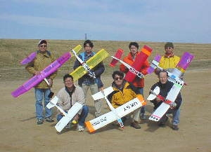 残念ながら、尾○での飛行会を断念しました。 でも、記念撮影は怠りません! |