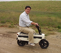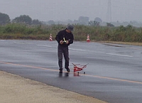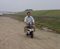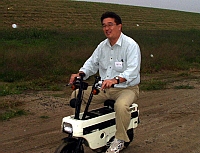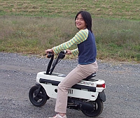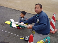 | 今回の電動機の集いにはもう一つ目的がありました。 そう!! 「モトコンポを乗りまわすこと!」 です。 見事にお披露目飛行い失敗したこともあって、 気分転換と人目を避けるため狂ったように乗りまわしました。 アホな親子を見てやってください。 集いに参加されました方、お騒がせしました。 | ||