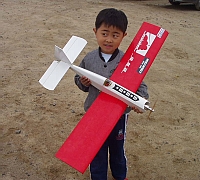 「幸ちゃんにも飛ばせる」(才川さんの息子さん) を合い言葉に開発された EP400クラス練習機〜スポーツ機です。 現在試作2型の低翼のラダー機で、 狭い範囲でもスポーツ飛行が出来るそうです。 EP&GP/ ラダー&エルロンバージョンARF機として、 発売を検討中だそうです。 |